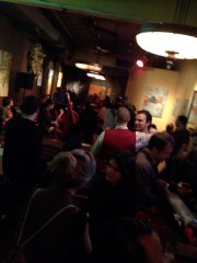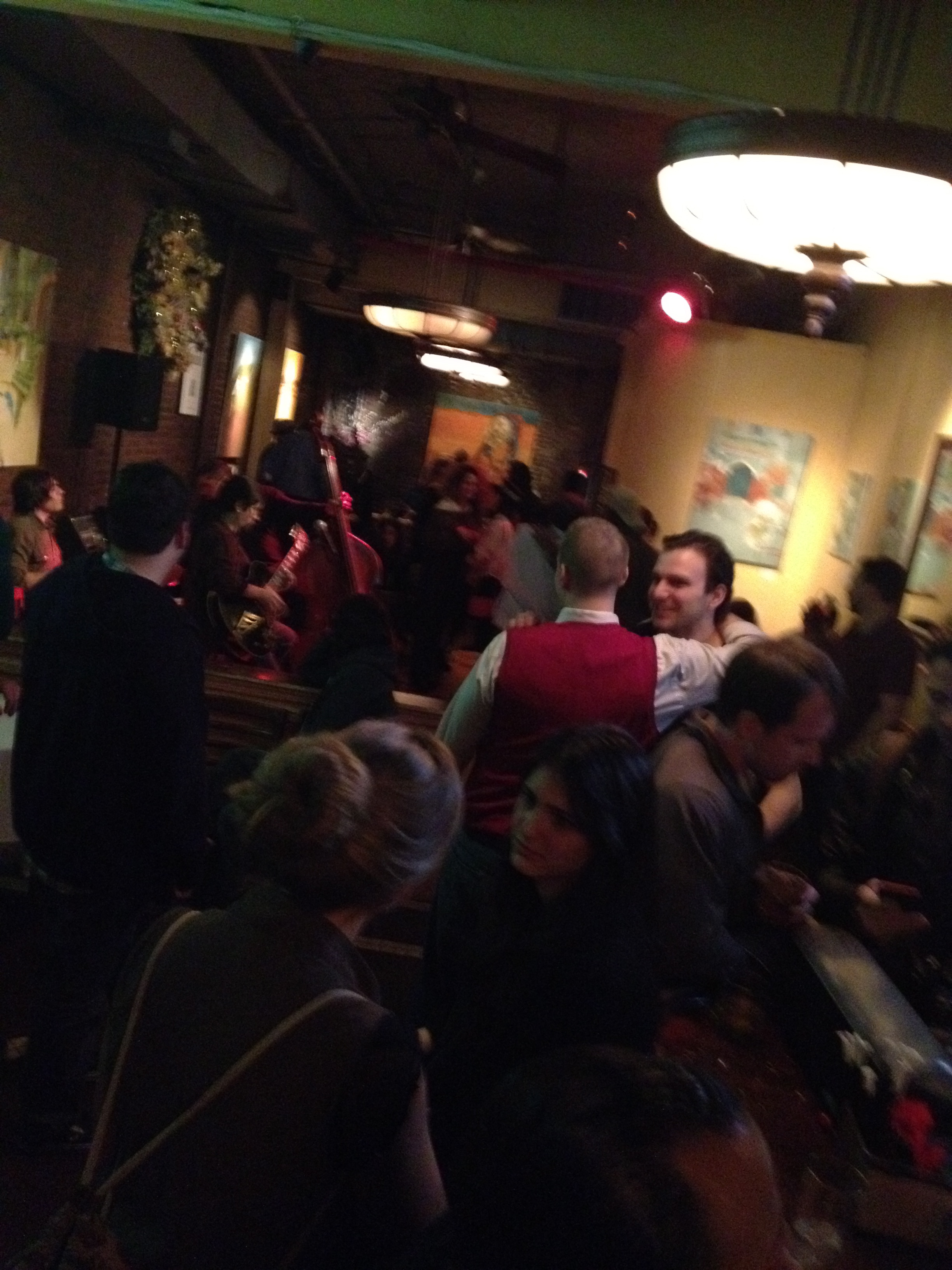 Well last night was the inaugural event- the first of many successful events- for IndieWalls and it was at the Cupping Room to celebrate the exhibit of Marysia Schultz’s paintings. After about a 2 or 1 month run, they will be coming down on the 15th- so check them out before they come down! Or just take a look at the website. Below are some images from the night. Sorry for the bad resolution, the pictures are from my iPhone: